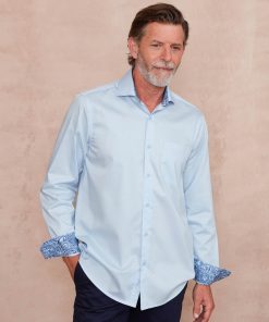 Savile Row Men’s Pale Blue Cotton Twill Classic Fit Smart-casual Shirt – Single Cuff | Pale