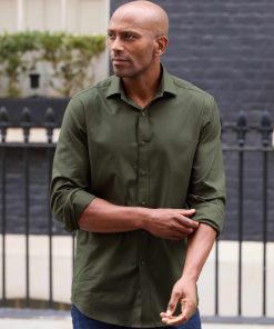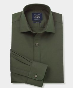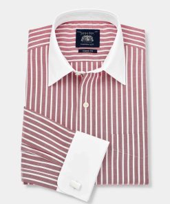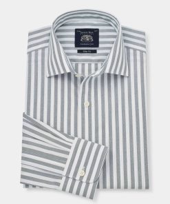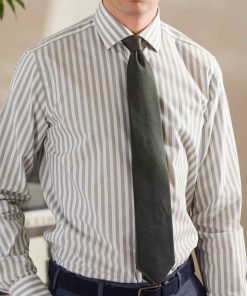 Savile Row Men’s Khaki White Stripe Cotton Classic Fit Formal Shirt – Single Cuff | Khaki