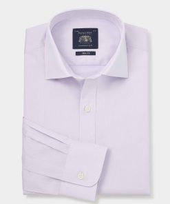 Savile Row Men’s Lilac Cotton Herringbone Classic Fit Formal Shirt – Double Cuff | Lilac