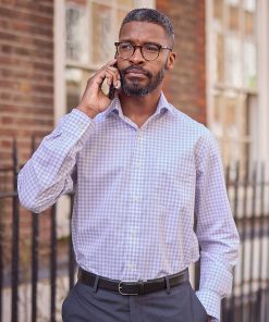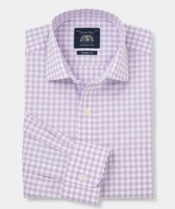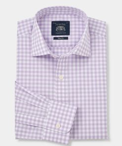 Savile Row Men’s Lilac Cotton Gingham Check Classic Fit Formal Shirt – Single Cuff | Lilac