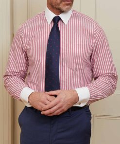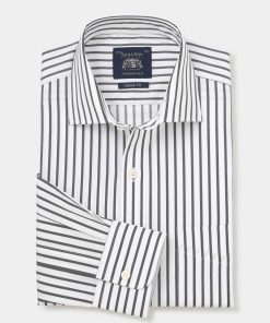 Savile Row Men’s Blue White Cotton Stripe Classic Fit Formal Shirt – Single Cuff | Blue White Stripe