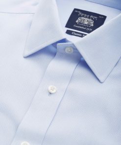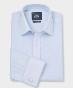Savile Row Men’s Light Blue Cotton Twill Slim Fit Non-iron Shirt – Double Cuff | Light