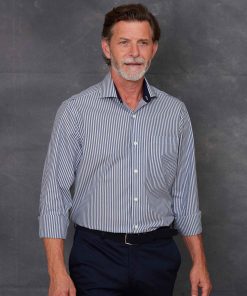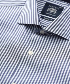 Savile Row Men’s Navy Cotton Bengal Stripe Classic Fit Smart-casual Shirt – Single Cuff | Navy