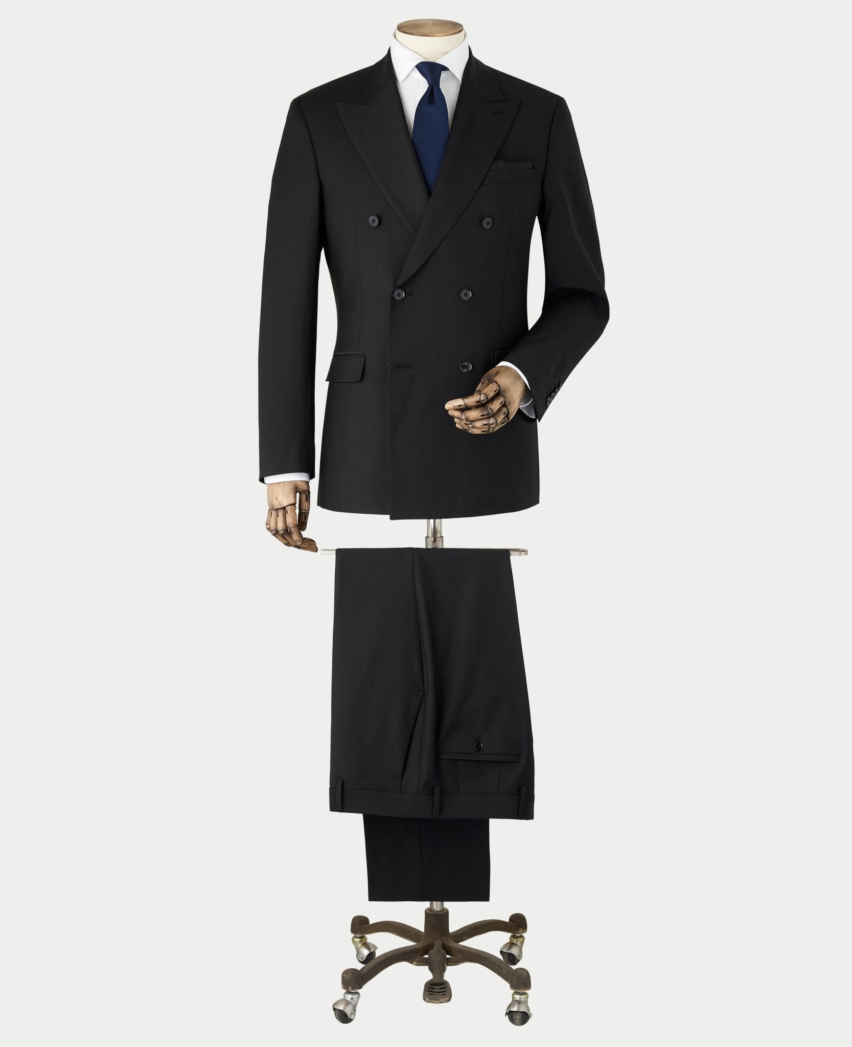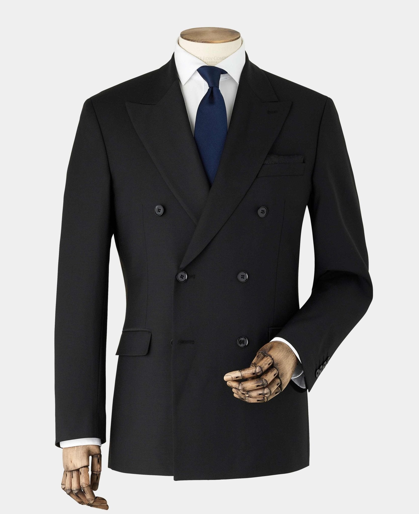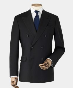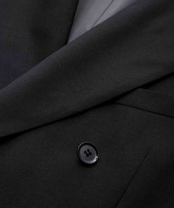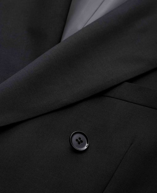The ultimate wardrobe essential, this men’s black double breasted tailored suit is the definition of timeless style. Sleek, versatile and effortlessly elegant, it’s the kind of suit every man should own. Whether you’re attending a formal event, making a strong impression at a business meeting or simply want to look sharp for a special occasion, this suit delivers every time. The jacket features a single-breasted, two-button front, two back vents and a rich burgundy lining, while the flat-front trousers offer a straight-leg silhouette for a clean, modern finish.
