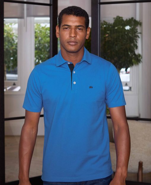 Our blue short-sleeved polo is a bestseller for a reason. Made from breathable cotton pique, it keeps you cool and comfortable no matter the season. The classic fit and short sleeves offer relaxed versatility, while refined details like a self-fabric two-piece collar, contrast navy inner placket, cross-stitched buttons, crest embroidery and herringbone side slits elevate it above the everyday. Finished with a smart two-button placket and easy-care machine wash.