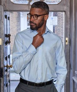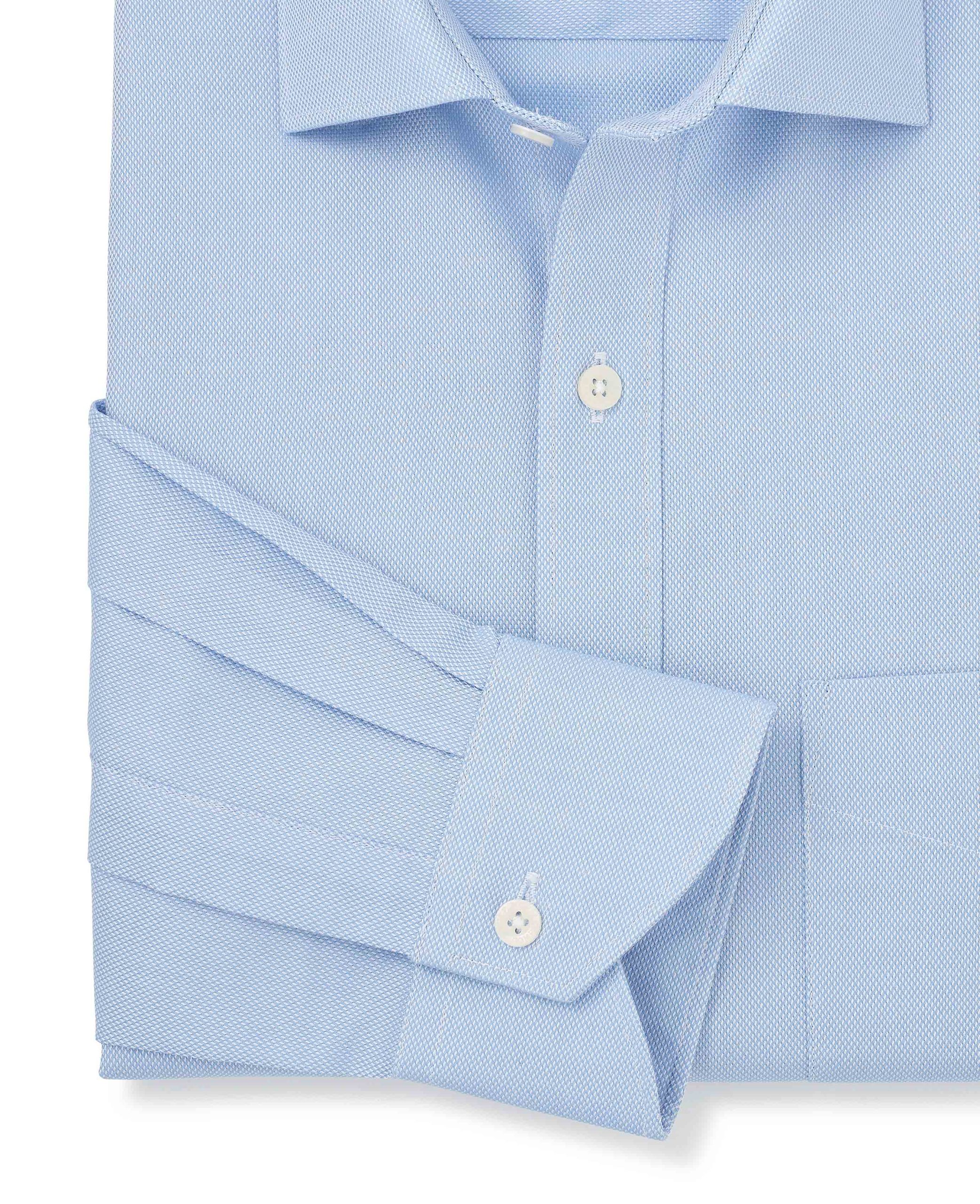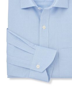 Crafted from versatile cotton dobby, this men’s formal shirt features intricate geometric patterns and a distinctive raised texture that adds depth and quiet character to your formalwear. The dobby weave not only provides a unique three-dimensional effect but also enhances durability with its thicker threads, making it a robust and stylish choice. Designed in a classic fit with curved single cuffs, it offers a comfortable, timeless silhouette perfect for any occasion.