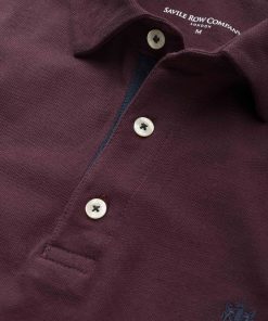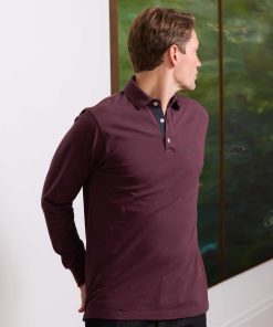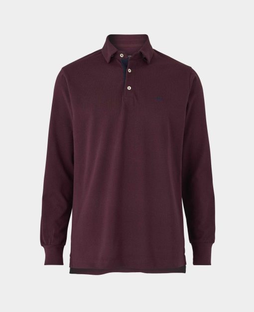 Savile Row Men’s Burgundy Cotton Pique Long Sleeve Polo Shirt | Burgundy