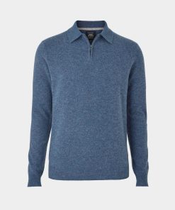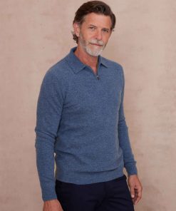 Made from Merino wool blended with cashmere for ultimate luxury and softness, this men’s zip-neck polo shirt will become a mainstay in your everyday wardrobe. Whether you wear it on top of a T-shirt or alone with jeans, it’ll keep you warm in style for just about any occasion.