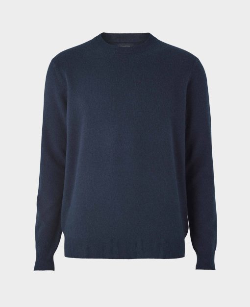 A true wardrobe essential, our navy wool-cashmere blend crew neck jumper combines refined simplicity with luxurious comfort. Expertly knitted from extra fine Merino wool and cashmere, it offers a beautifully soft feel with just the right amount of warmth, making it ideal for year-round wear. The lightweight 12-gauge knit ensures a smooth finish that layers effortlessly under coats or over shirts, while the regular fit and fully fashioned sleeves provide a smart, well-balanced shape. Timeless and versatile, the deep navy hue pairs effortlessly with everything from denim to tailoring.