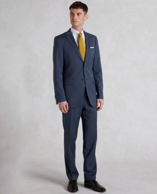 Savile Row Men’s Dark Blue Wool-blend Tailored Suit Trousers | Dark