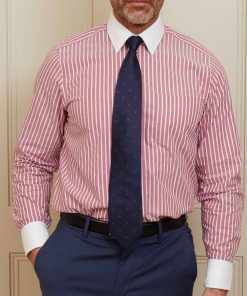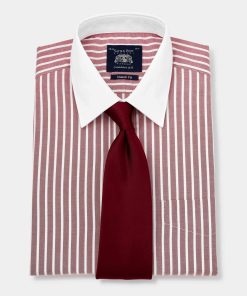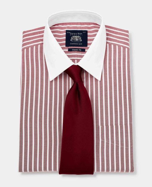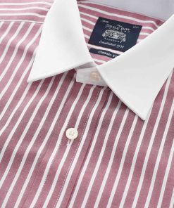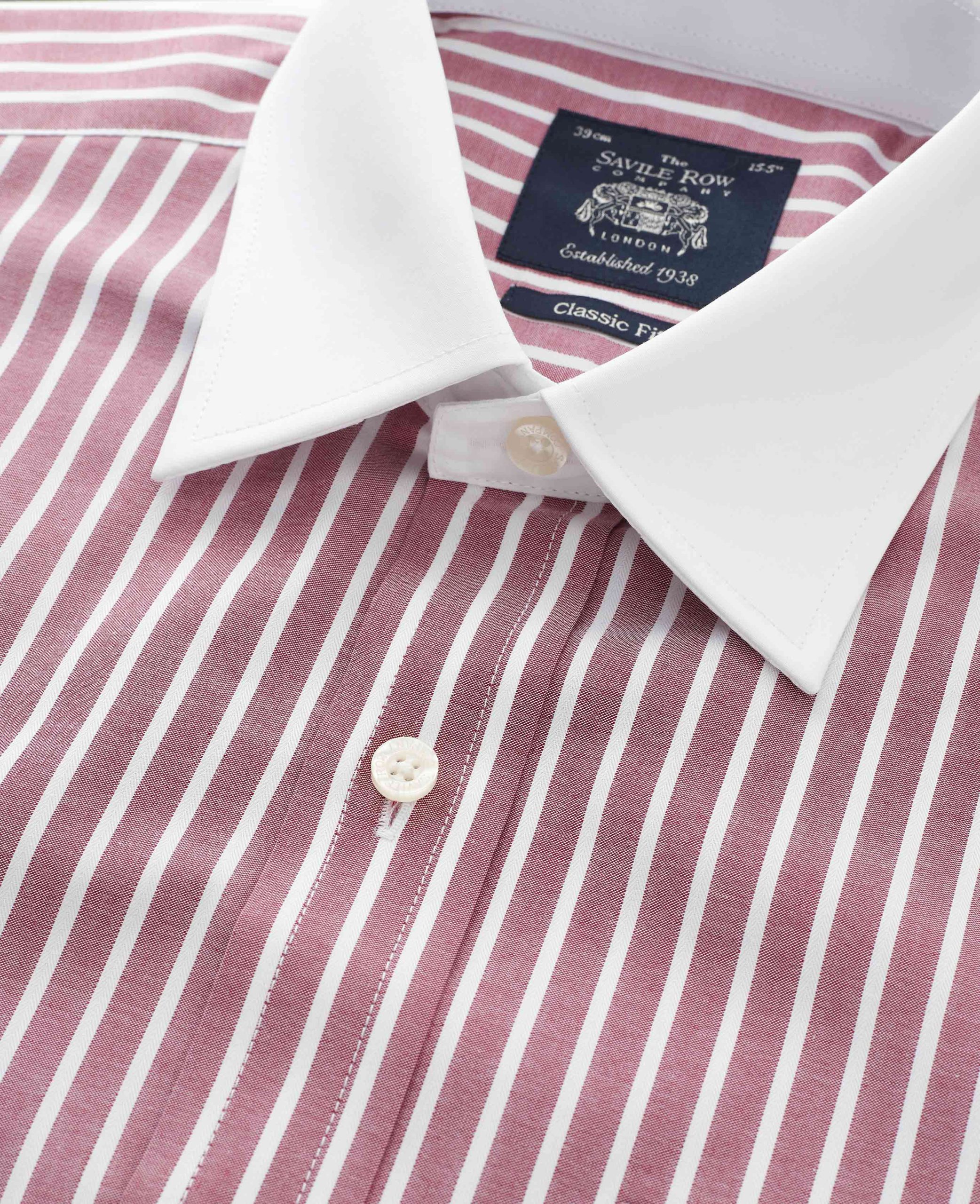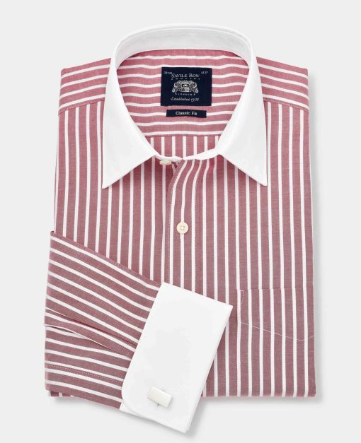 Red and white stripe shirt with contrasting white collar and cuffs. 100% cotton. Available in our generously proportioned classic fit shape.