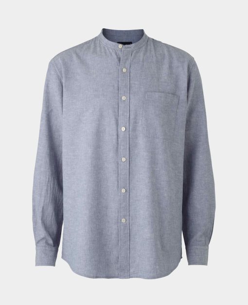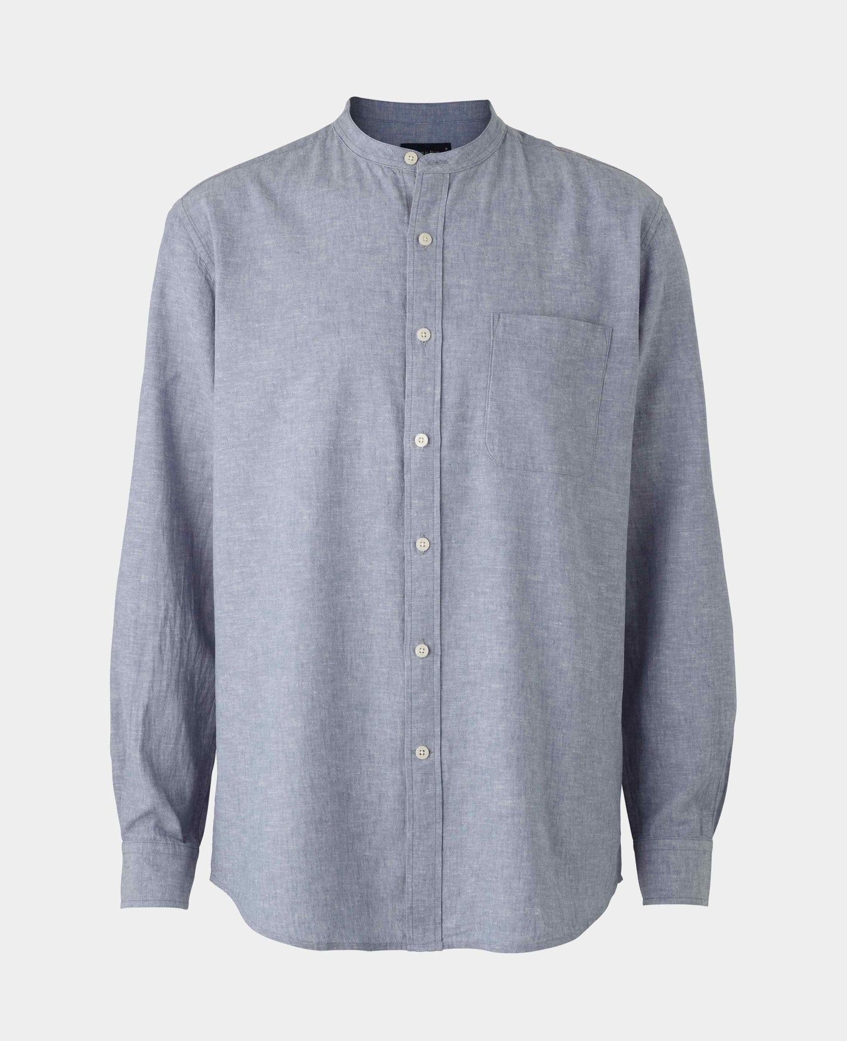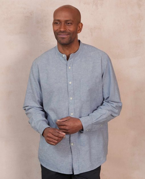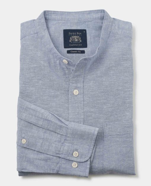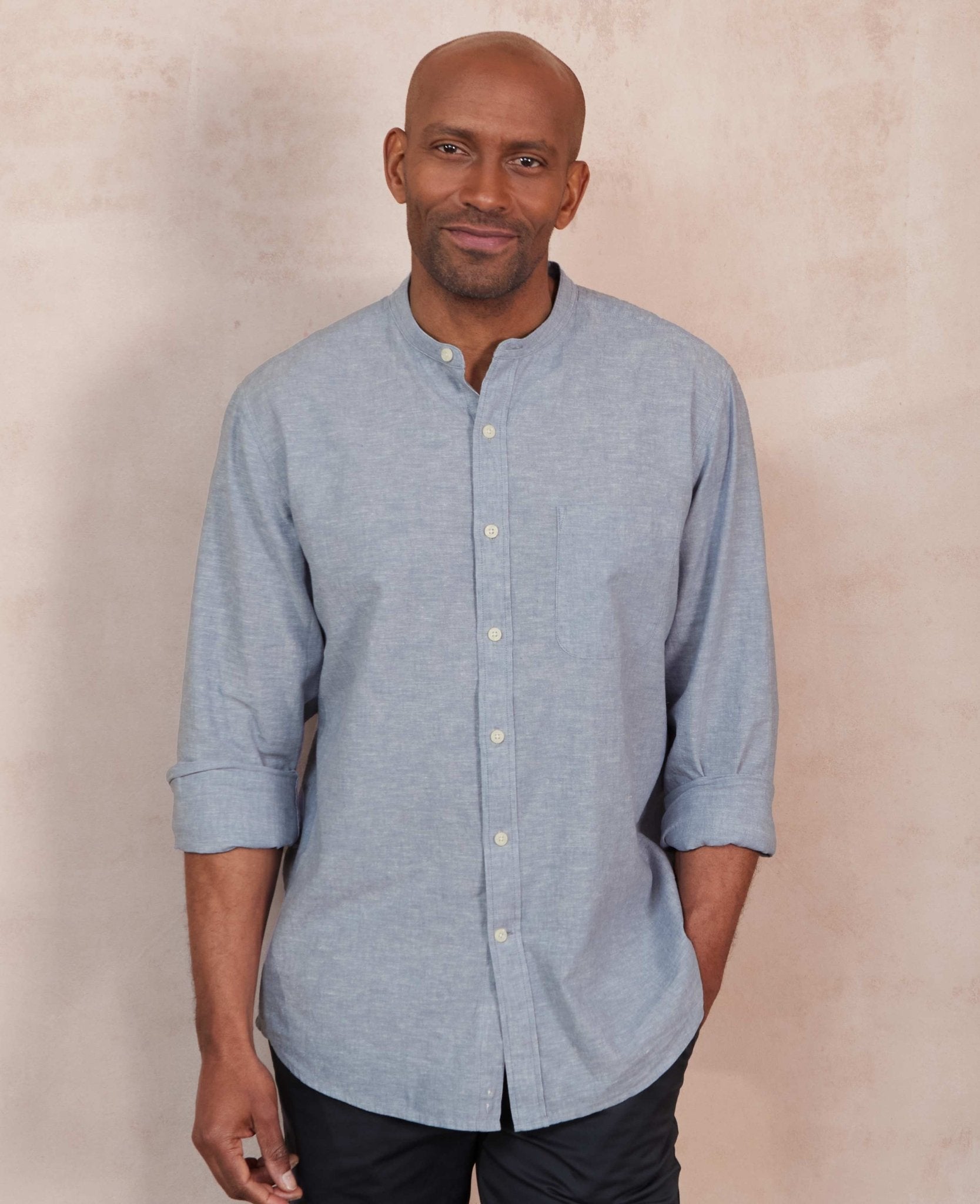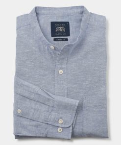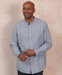 Add a touch of relaxed style to your summer wardrobe with this denim blue casual shirt. The grandad collar gives the shirt a carefree, classic edge, offering a smart yet laid-back look perfect for warm days, especially when you roll the sleeves. Made from a blend of linen and cotton, this shirt combines linen’s breathable, cooling properties with the softness and durability of cotton, ensuring comfort throughout the day while minimising creasing.