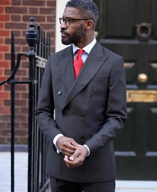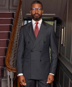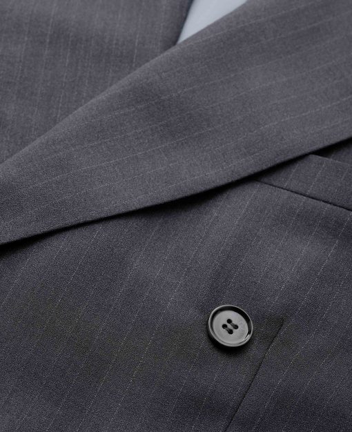 Savile Row Men’s Grey Wool Blend Chalk Stripe Double Breasted Suit Jacket | Grey