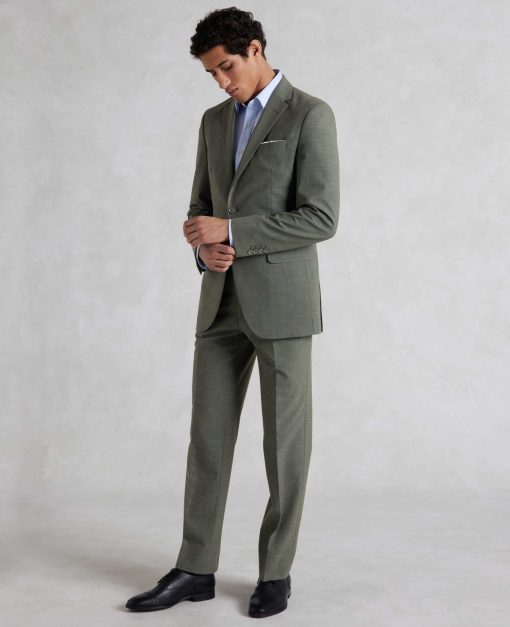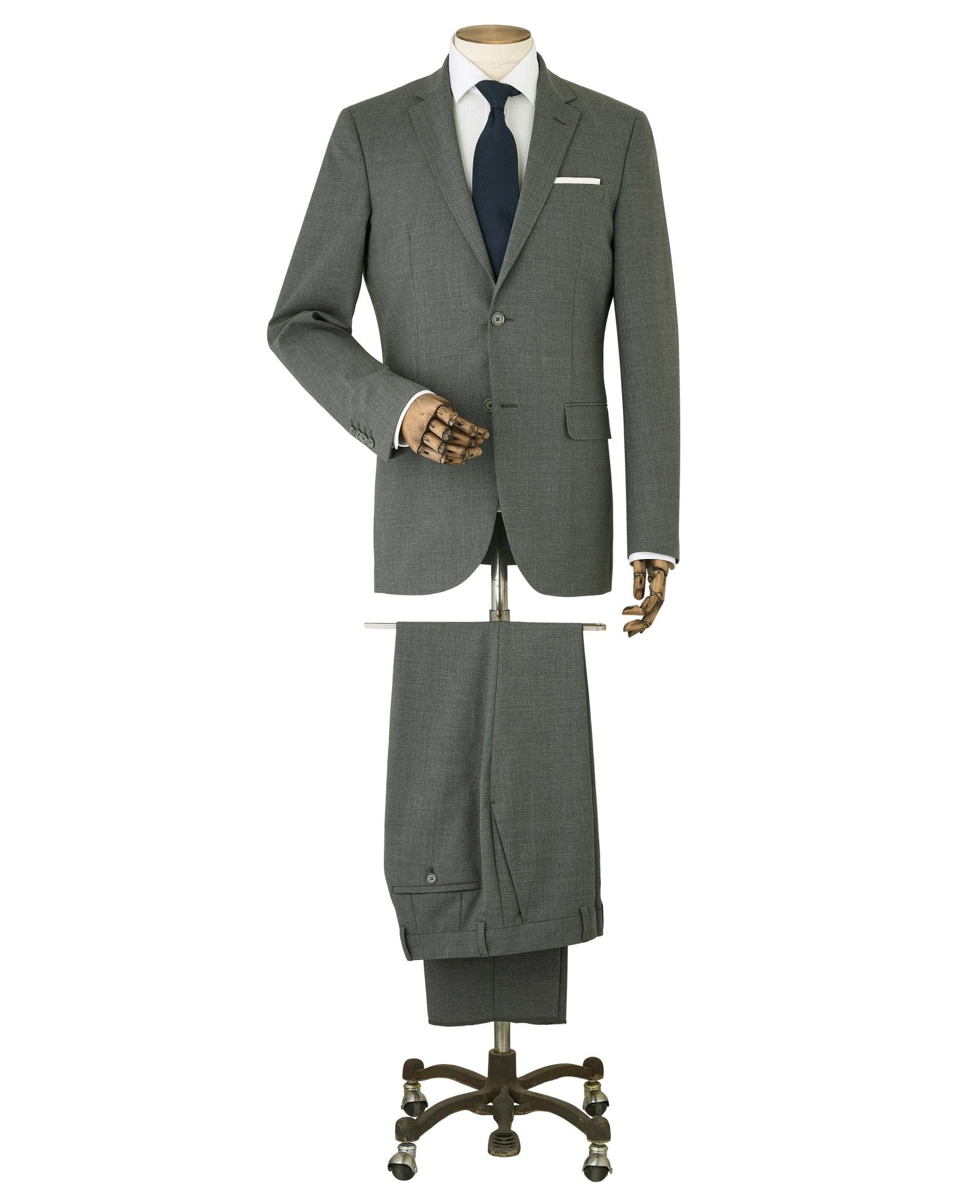 Designed on Savile Row, this two-piece grey suit is a smart and reliable choice for the refined gentleman. Hardwearing and beautifully soft, it features forest green lining and has been made from a luxurious wool-blend which offers natural crease recovery-making it the ideal companion for your next business trip.