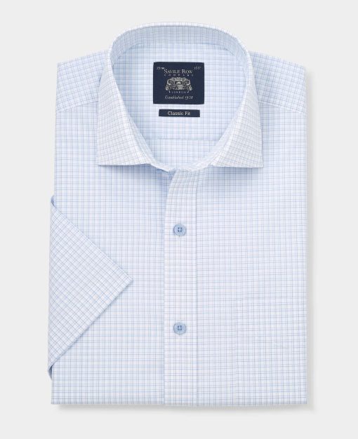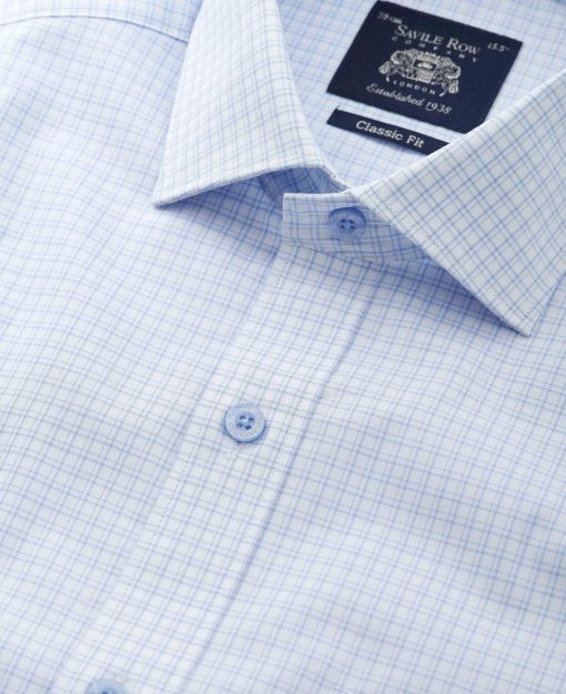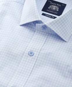 Ideal for stuffy offices and summer business lunches, our men’s light blue check formal shirt will ensure you remain smart in the heat. Crafted from a smooth cotton fabric in our comfortable classic fit, it’s finished with a cutaway collar, branded buttons and a chest pocket.