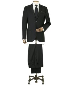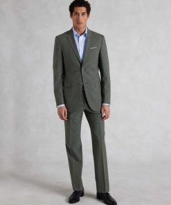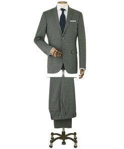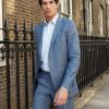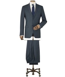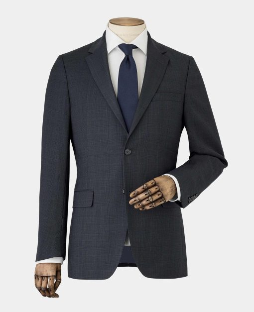 This men’s suit jacket is made from a wool-blend fabric that has a hint to stretch to reduce creases and maximise comfort. Decorated with a subtle Price of Wales check, it’s a single-breasted, two-button design with pockets and double back vents. Inside you’ll find beautiful pale blue lining.