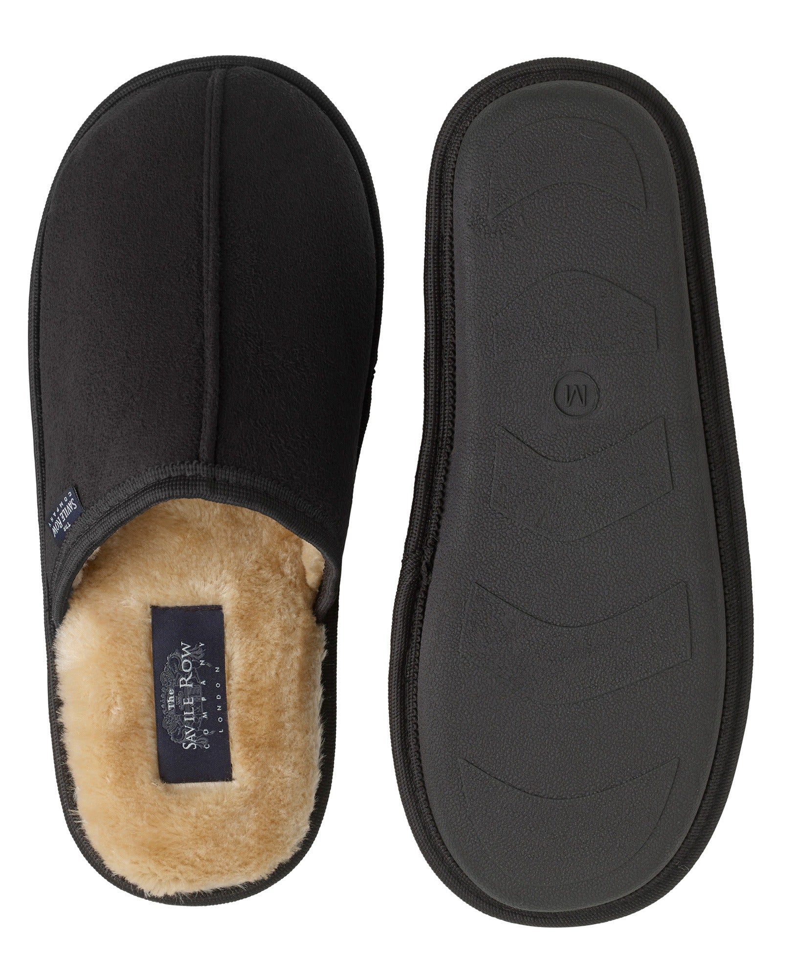 Made from black microsuede, these mule-style slippers are hardwearing and luxuriously comfortable. Great for gifting, they come complete with cosy lining and non-slip rubber soles.