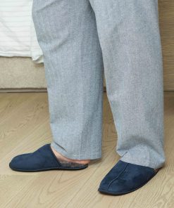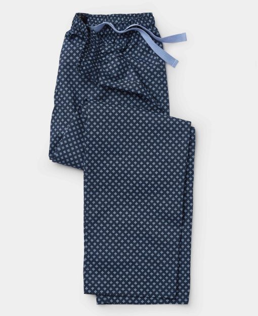 Unwind in style with our men’s blue printed lounge pants, where classic design meets everyday comfort. Whether you’re enjoying a slow morning, winding down after a long day or slipping into sleep, these bottoms are designed to keep you feeling cool and at ease. Crafted from 100% pure cotton poplin, the fabric is lightweight, breathable and wonderfully soft against the skin. The fully elasticated waistband, finished with a contrast herringbone drawstring, ensures a flexible, comfortable fit, while the buttoned working fly adds a touch of everyday practicality. A single back pocket, embroidered with our signature logo, completes the refined yet laid-back look.
