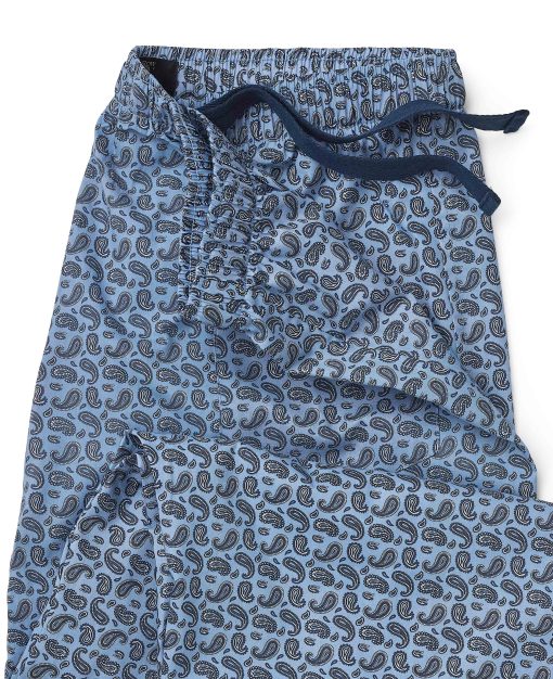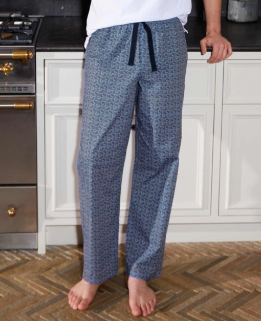 Savile Row Men’s Nightwear Blue Paisley Print Cotton Lounge Pants | Blue