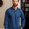 - Contrast navy inside neck placket, cross stitching on button placket, crest embroidery and herringbone in side slit