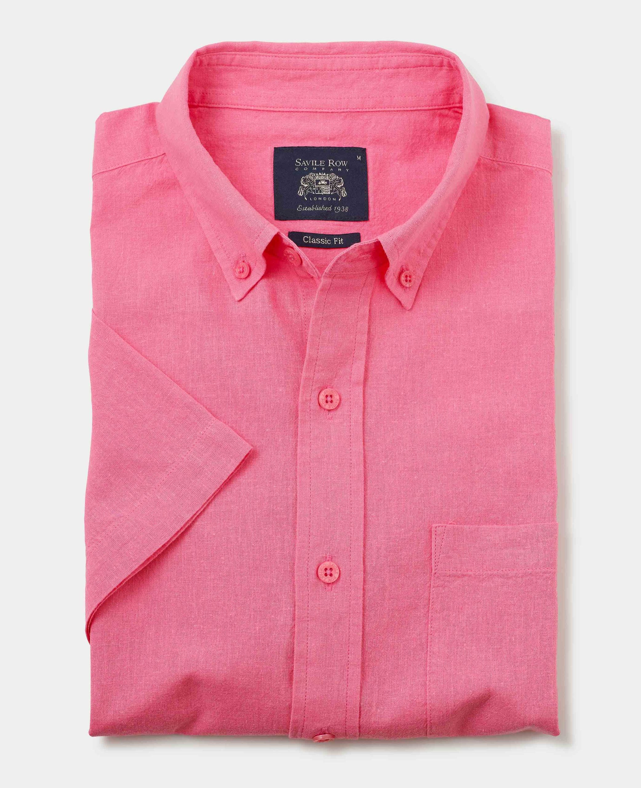 Make a statement in the sun with this vibrant pink short sleeve button-down shirt. The bright hue is perfect for standing out and embracing the sunny season, whether you’re at a BBQ, on holiday or enjoying a family day out. Designed with a flowy, roomy classic fit, it offers a flattering shape that allows for freedom of movement and all-day comfort. The fabric, made from a blend of cotton and linen, brings the best of both worlds: the cooling, breathable properties of linen paired with the softness and wrinkle resistance of cotton. This ensures you stay cool, comfortable, and looking fresh with minimal fuss.