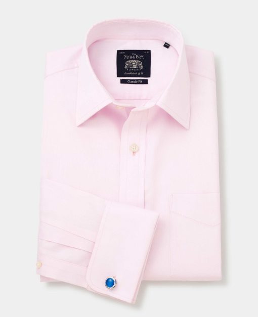 Our popular pink formal shirt in a non-iron fabric. 100% cotton, classic fit shape. Complete with a curl-resistant Windsor collar and double cuffs.