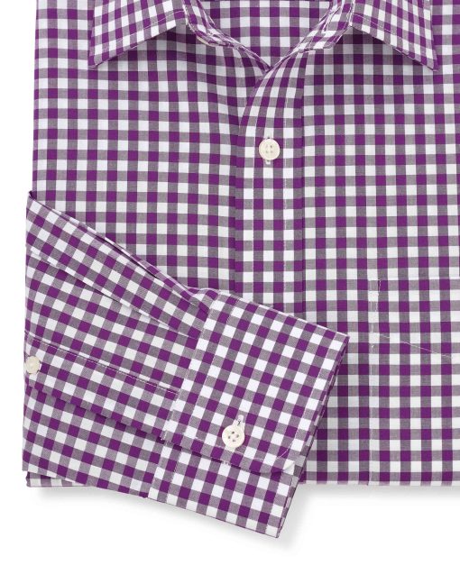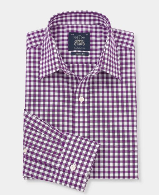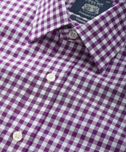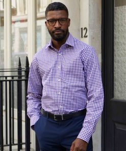 From lunches with clients to after-work drinks, this purple gingham shirt will help you look sharp for any occasion. It’s made from 100% cotton and features a crisp curl-resistant collar and single cuffs. You can wear yours with a tailored suit and tie, or simply team it a pair of smart trousers.