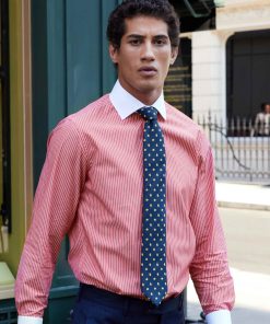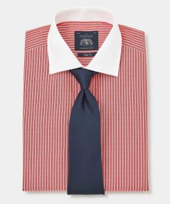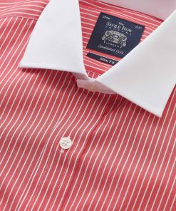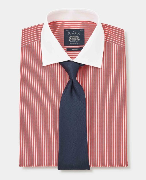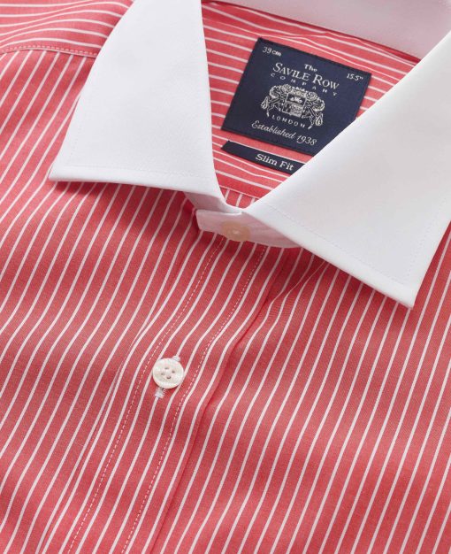 Savile Row Men’s Red White Reverse Stripe Cutaway Collar Slim Fit Formal Shirt – Double Cuff | Red