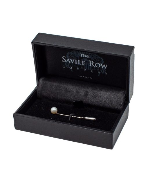 This pin will make a sophisticated addition to any suit. It is made from sterling silver and finished with an elegant freshwater cultured pearl.