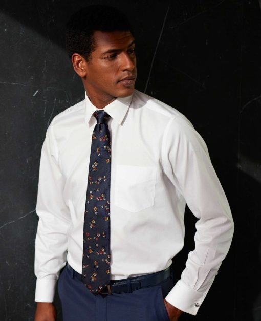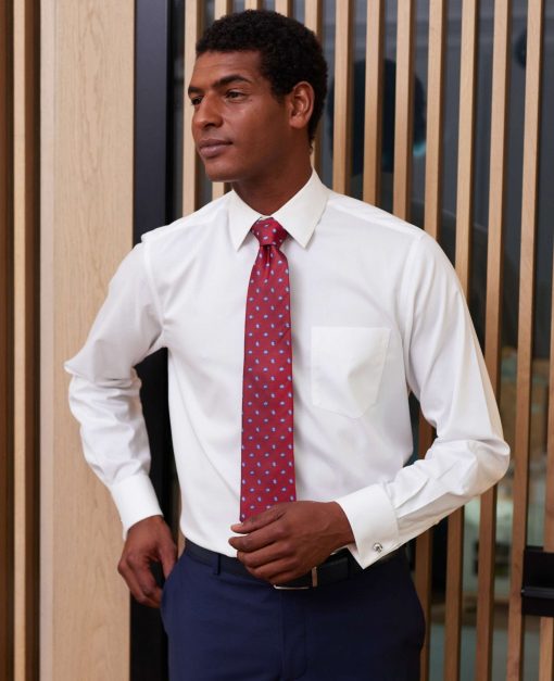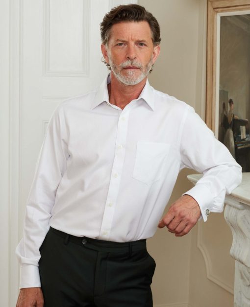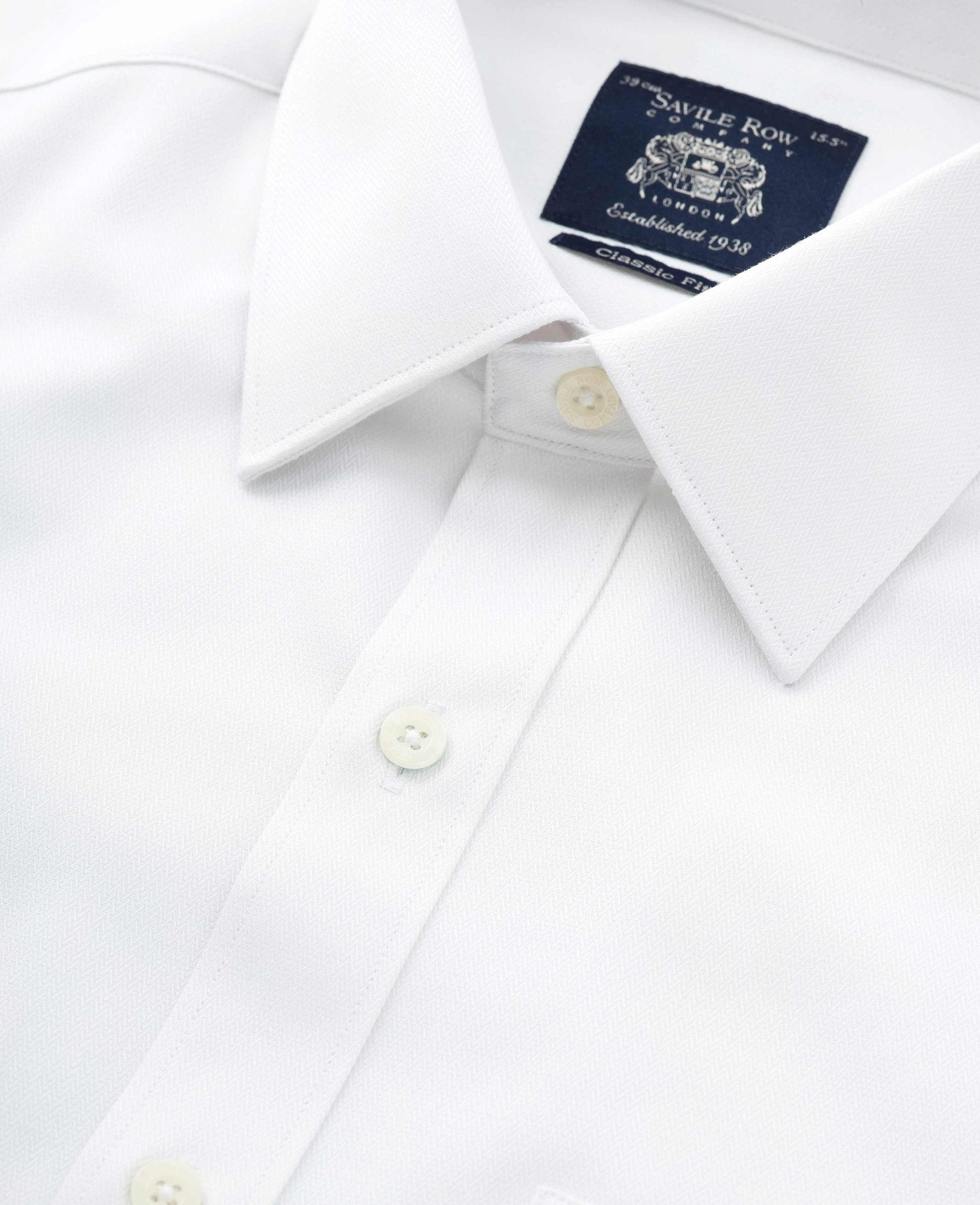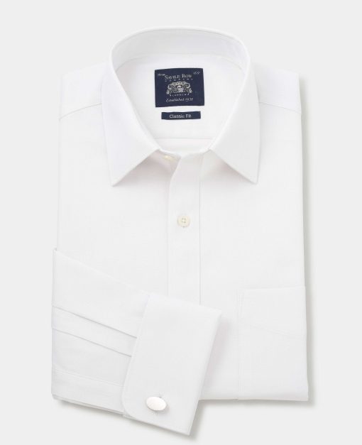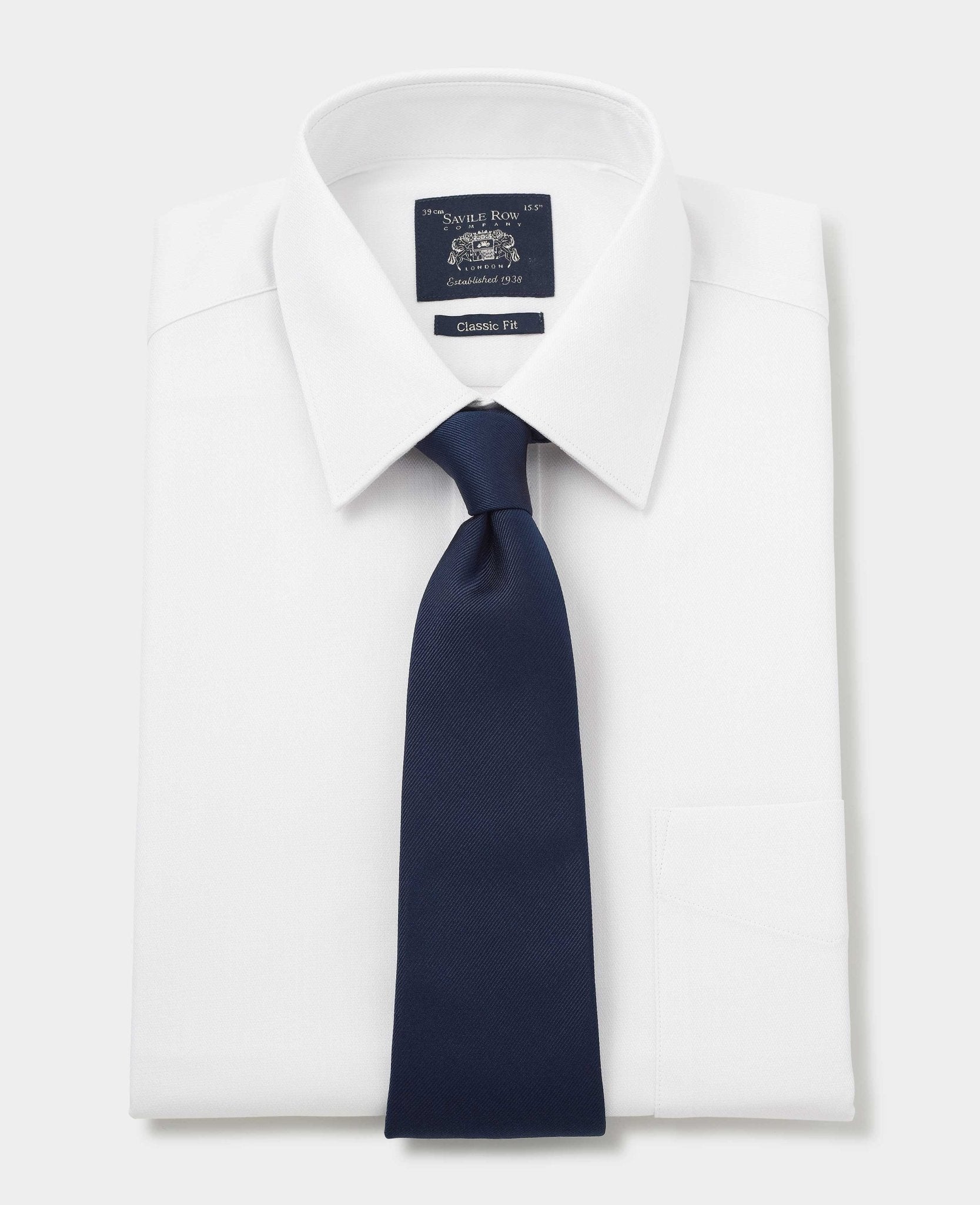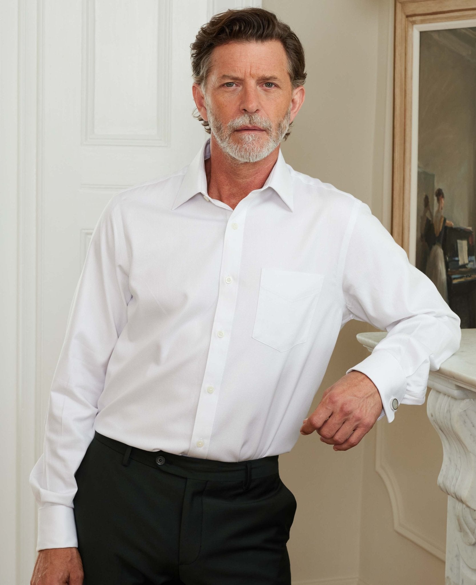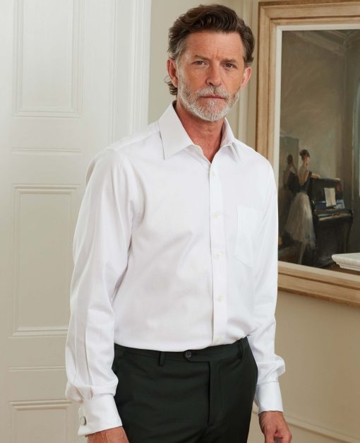 A classic men’s white shirt boasting a wonderful texture thanks to a herringbone weave. Cut to a classic shape for ultimate comfort, it’s finished with a convenient chest pocket and classic double cuffs. Soft, timeless and easy to iron.