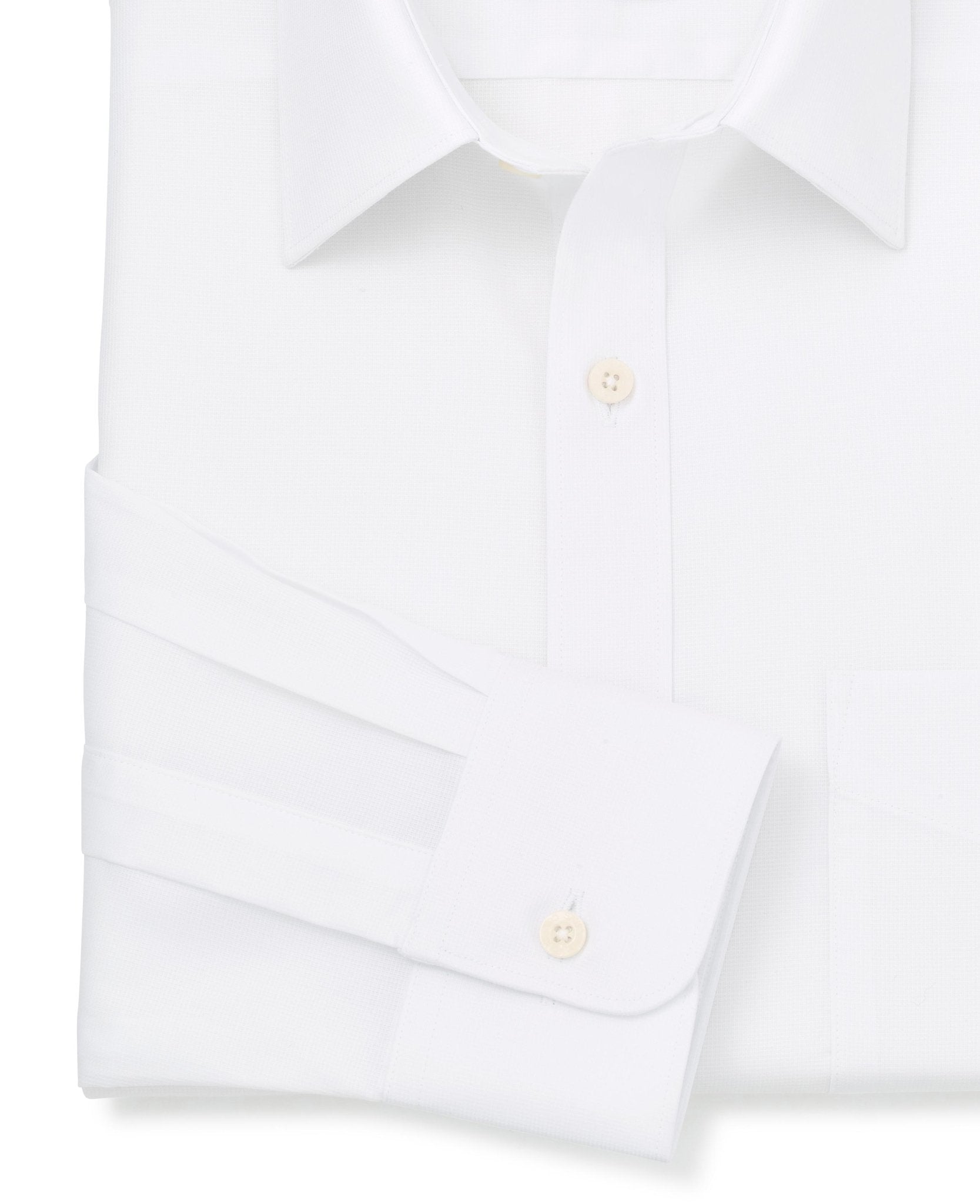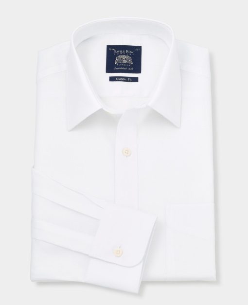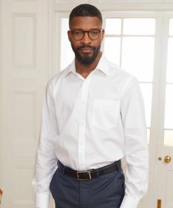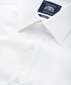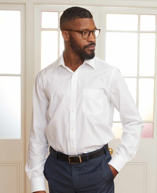 Crafted from cotton and finished with a curl-resistant collar and single cuffs, this is the perfect white work shirt. It’ll look great with a navy or grey suit, but will work just as well on its own with some formal trousers.