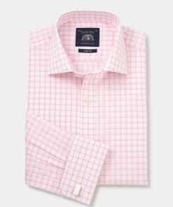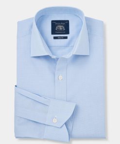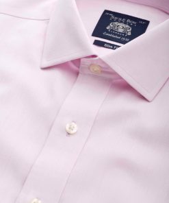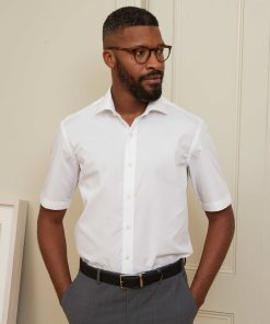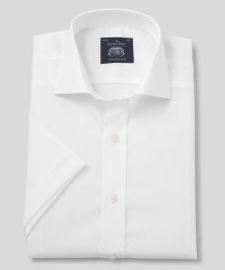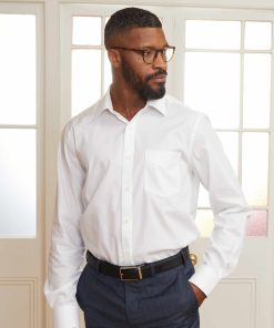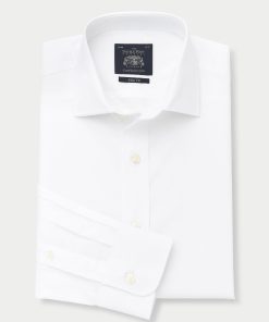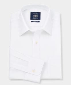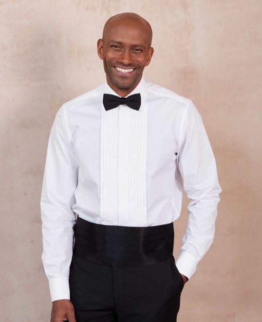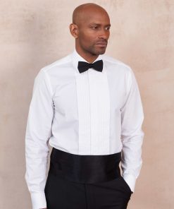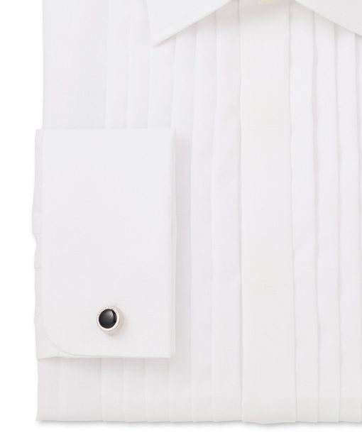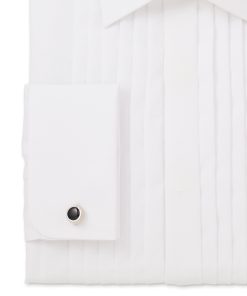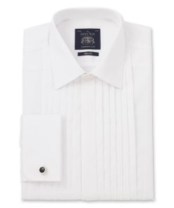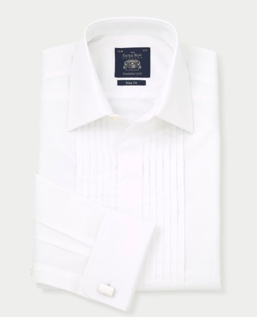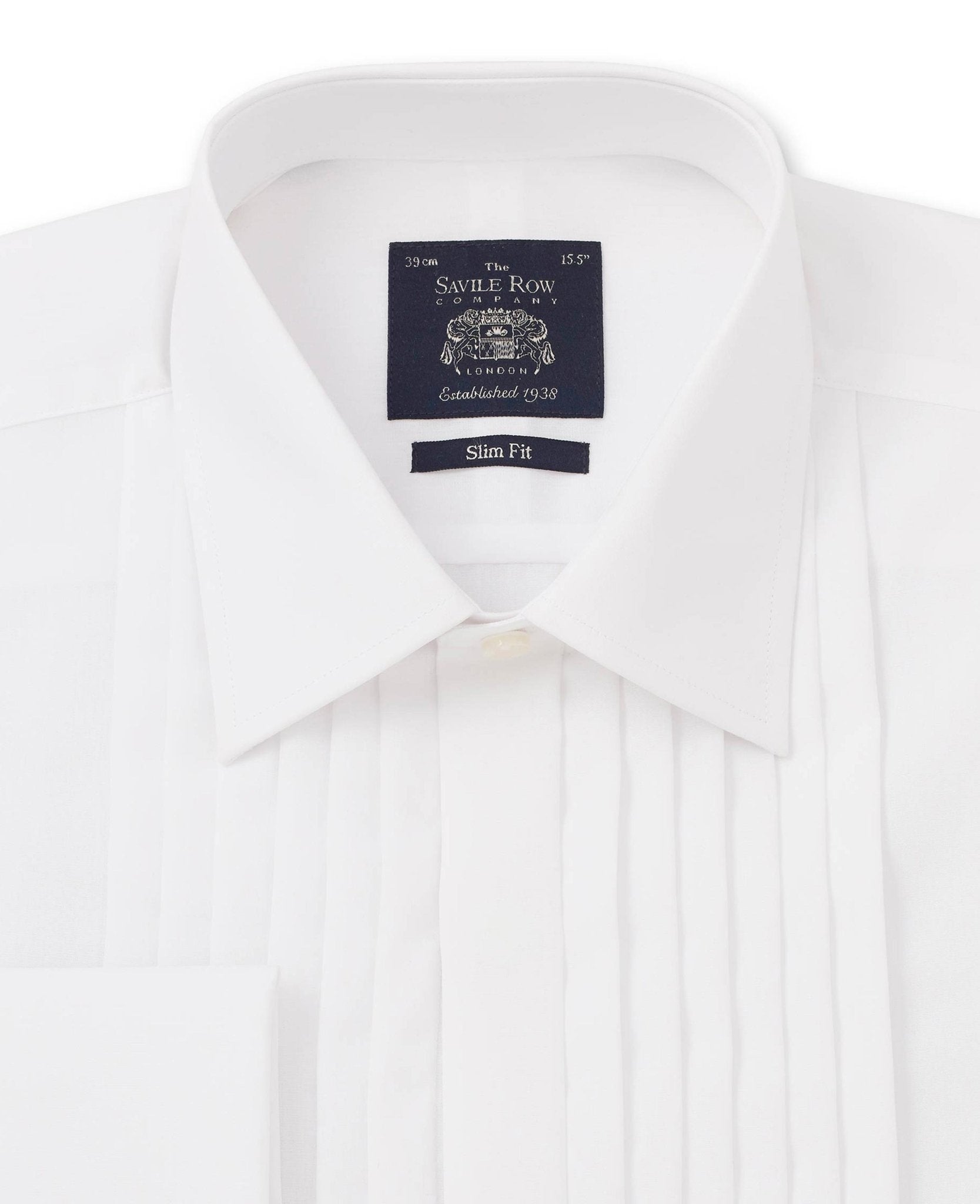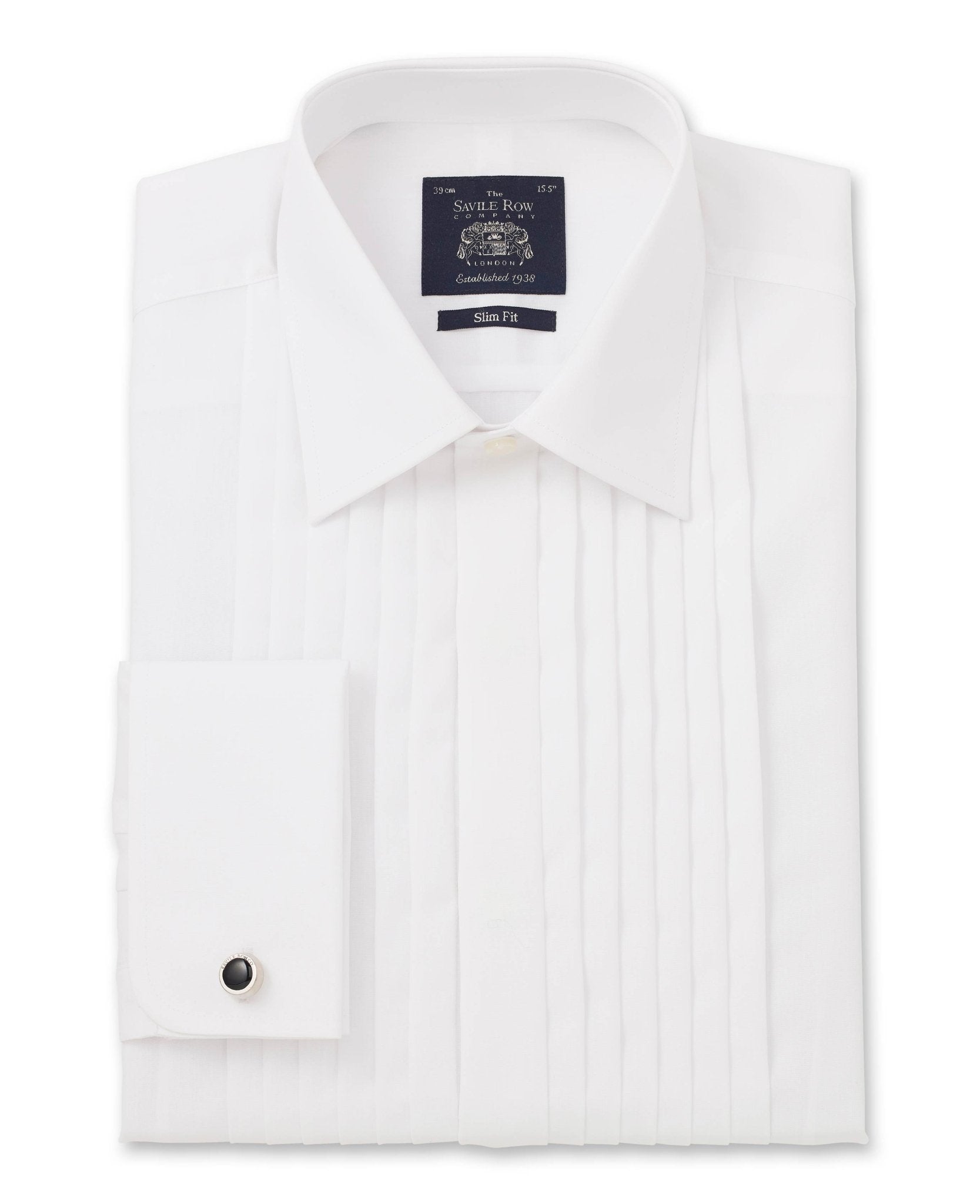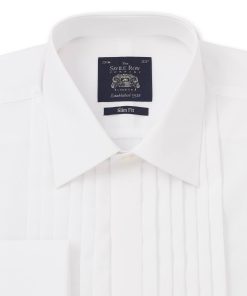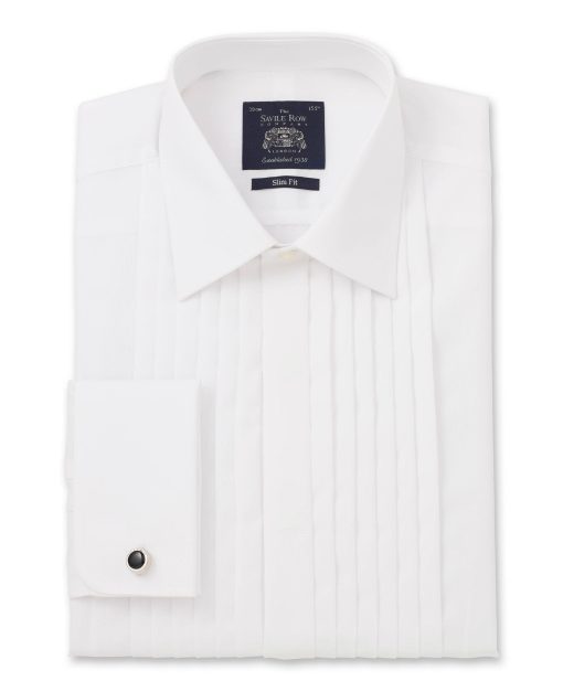 Savile Row Men’s White Poplin Pleated Slim Fit Double Cuff Evening Formal Shirt | White