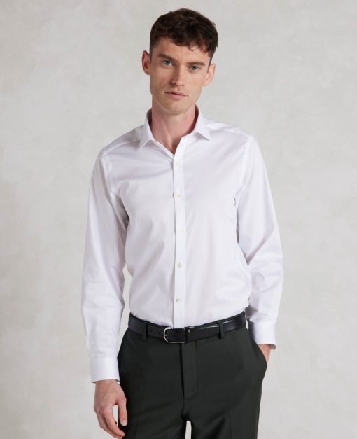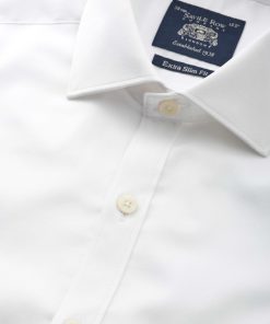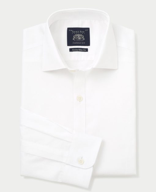 Savile Row Men’s White Twill Extra Slim Formal Shirt – Single Cuff | White