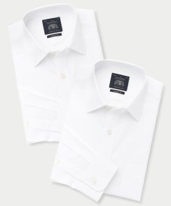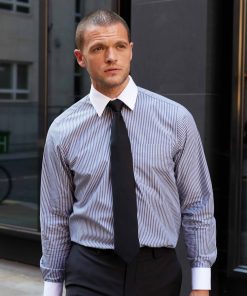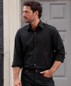 Savile Row Men’s Black Cotton Herringbone Classic Fit Formal Shirt – Single Cuff | Black