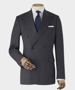 Savile Row Men’s Grey Wool Blend Chalk Stripe Double Breasted Suit Jacket | Grey