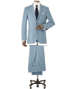 Savile Row Men’s Light Blue Cotton Twill Slim Fit Non-iron Shirt – Double Cuff | Light