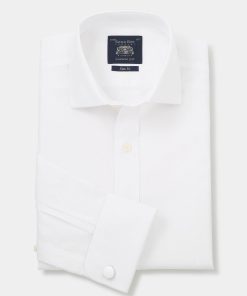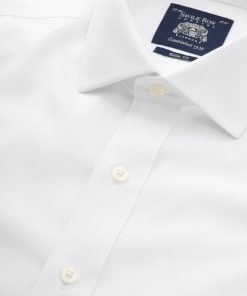Savile Row Men’s White Dobby Weave Cotton Classic Fit Formal Shirt – Single Cuff | White