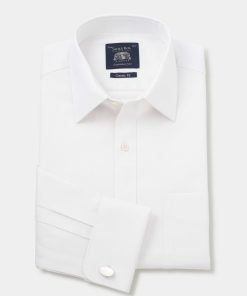 Savile Row Men’s White Cotton Herringbone Classic Fit Formal Shirt – Double Cuff | White