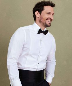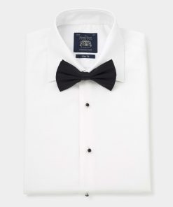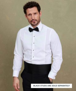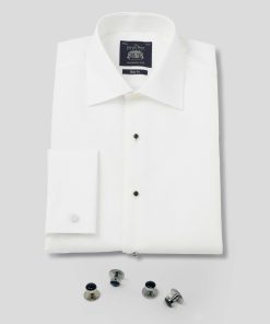 Savile Row Men’s White Marcella Bib Front Slim Fit Evening Double Cuff Formal Shirt | White