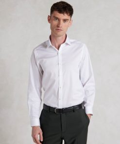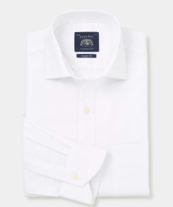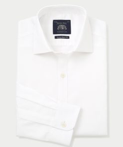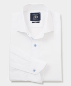 Savile Row Men’s White Slim Fit Cotton Poplin Formal Shirt – Single Or Double Cuff | White