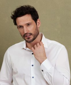 Savile Row Men’s White Slim Fit Contrast Button Smart-casual Shirt – Single Cuff | White