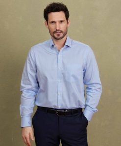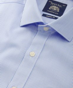 Savile Row Men’s Blue Cotton Twill Classic Fit Striped Formal Shirt – Single Cuff | Blue