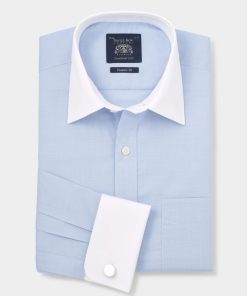 Savile Row Men’s Blue Cotton Herringbone Classic Fit Formal Shirt – Double Cuff | Blue
