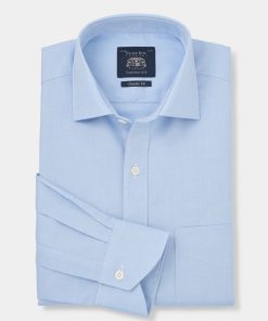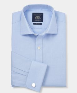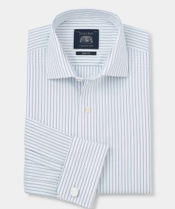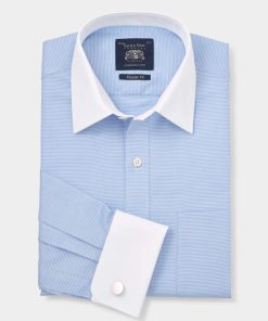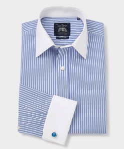 Savile Row Men’s Blue White Cotton Stripe Classic Fit Formal Shirt – Single Cuff | Blue White Stripe