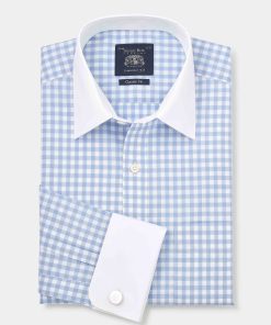 Savile Row Men’s Blue Navy Prince Of Wales Check Classic Fit Formal Shirt – Single Cuff | Blue